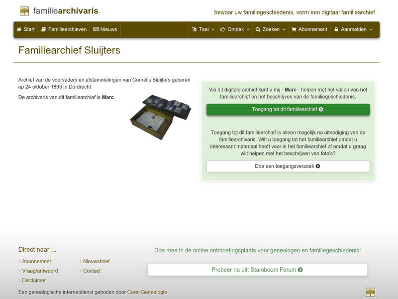 Archief van de voorvaders en afstammelingen van Cornelis Sluijters geboren op 24 oktober 1893 in Dordrecht Familiearchivaris: Marc