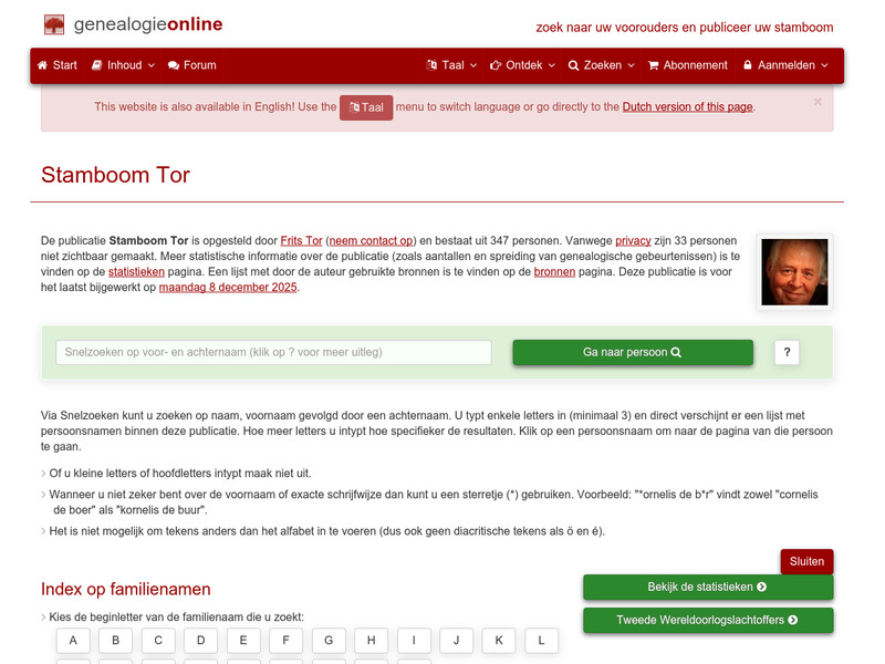 Een genealogische publicatie door Frits Tor met gegevens over onder andere de families TOR, VENEMA, BOER, RUITER, BONTJER, BERENTS, KOERTS, Tor & FLINK.